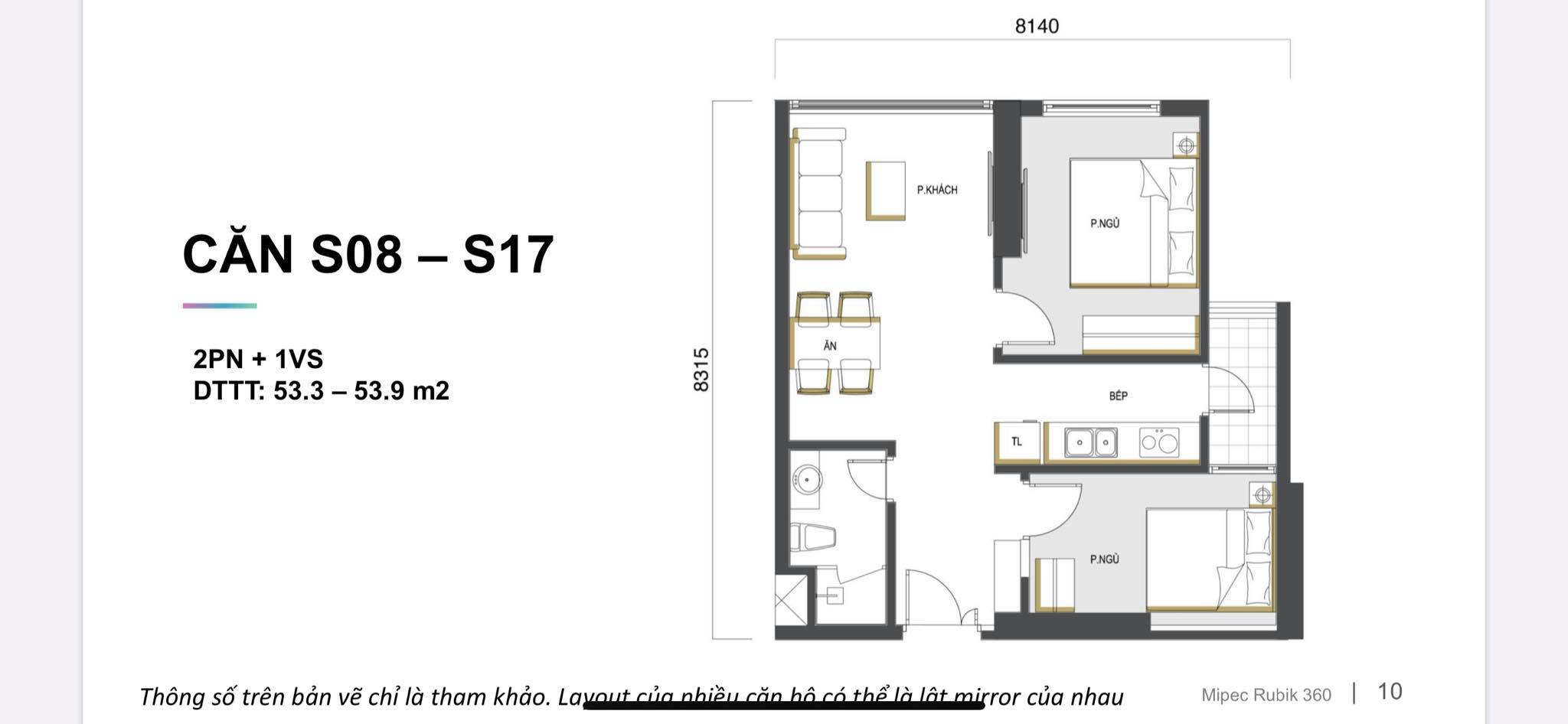 Mipec Rubik 360 – Căn hộ 2 phòng ngủ + 1 vệ sinh: 53,3m2. Giá bán chỉ 2,2 tỷ / căn.