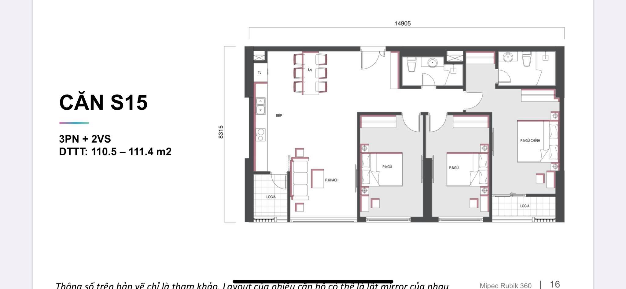 Mipec Rubik 360 – Căn hộ 3 phòng ngủ: 93,6m2 – 107,8m2 – 110,2m2. Giá bán chỉ 3,9 tỷ / căn.