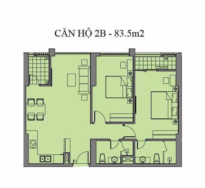 - Căn hộ 2 phòng ngủ + 2 vệ sinh: 68,6m2 – 68,8m2 – 70,3m2 – 75,8m2 – 76,3m2 – 82m2 – 83,5m2.