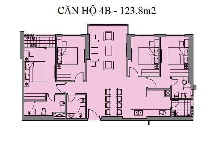 - Căn hộ 4 phòng ngủ: 123,8m2.