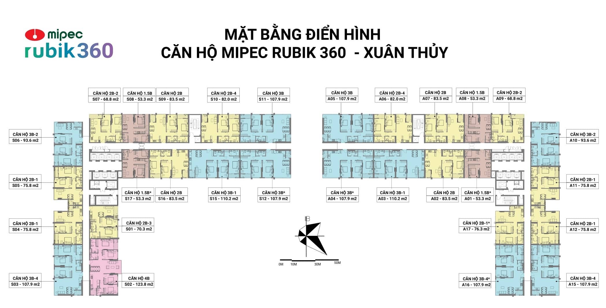 MẶT BẰNG KHỐI CAO TẦNG DỰ ÁN MIPEC RUBIK 360 XUÂN THỦY