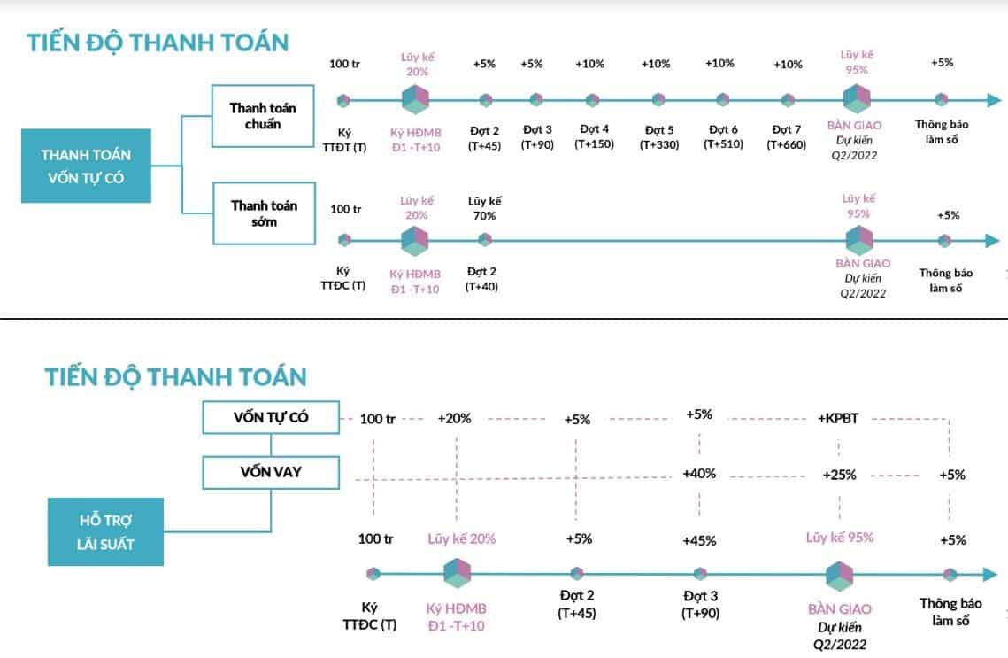 - Thanh toán Đợt 8 – 25% Giá trị căn hộ (Khi bàn giao nhà dự kiến Quý II năm 2022);